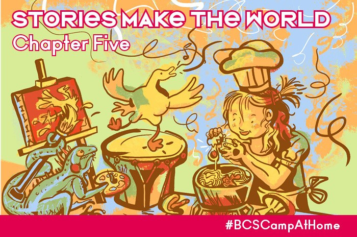 A series of illustrations I created to advertise “Camp at Home” on social media (an eight week interactive storytelling workshop to inspire 1st through 6th graders to write plays during the COVID-19 pandemic). ︎︎︎